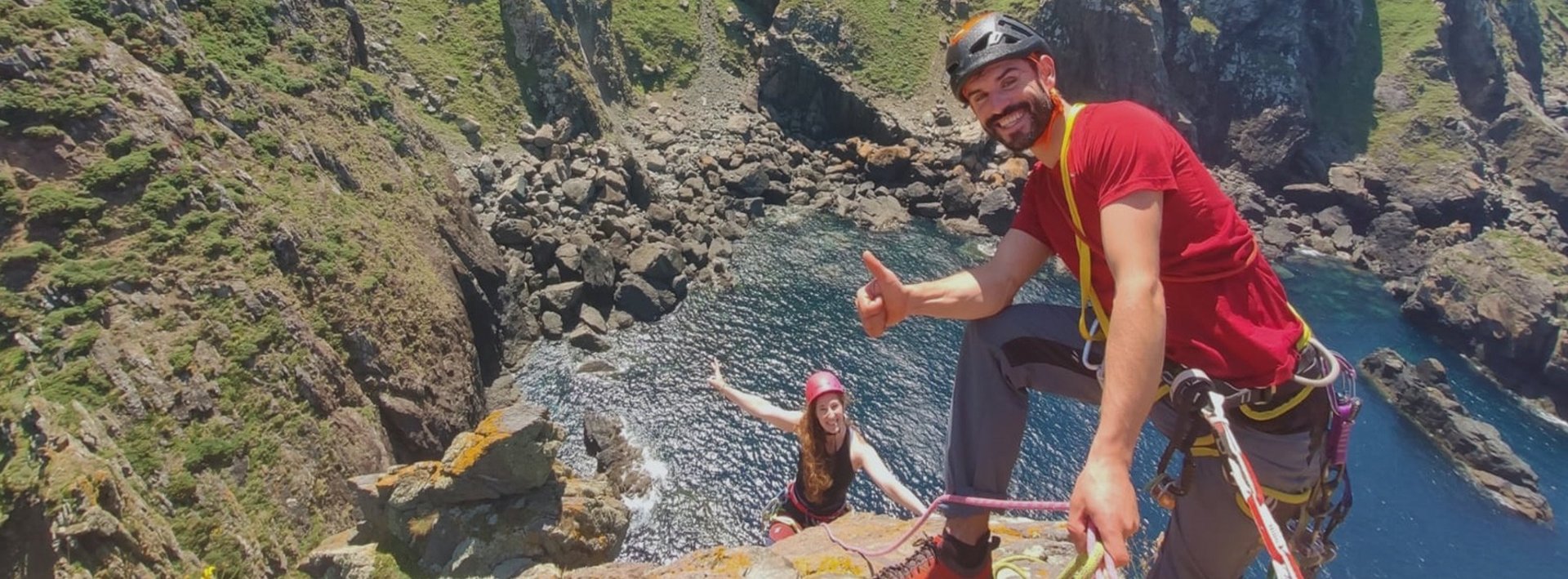 Uno de los guiados mas impresionantes es a la aguja de Cabo Ortegal. Tiene vías para todos los niveles y será una aventura que nunca olvidarás. Sobre todo el impresionante rapel de descenso.