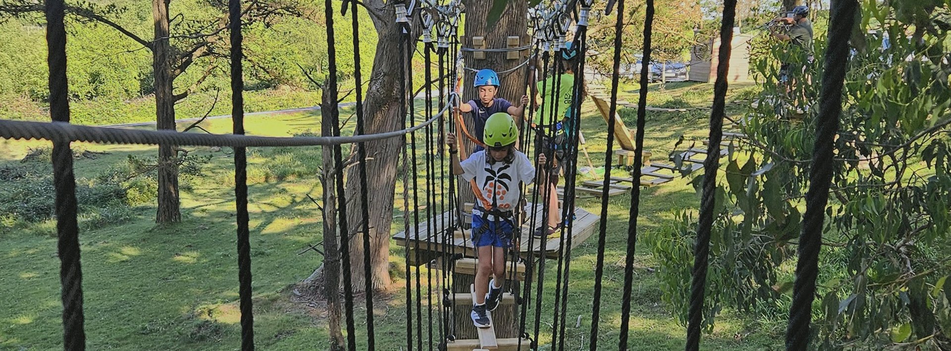 Tenemos en construcción un circuito de juegos en plataformas con puentes y tirolinas. Consta de 12 pruebas que tendrás que superar en familia.